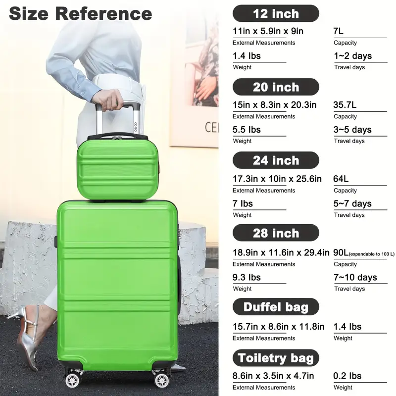 • 5-teiliges Set – Enthält Koffer in den Größen 12″, 20″, 24″ und 28″ für jede Reise.