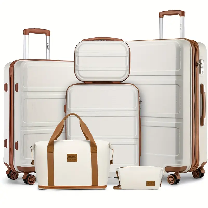 Kono 5-teiliges Hartschalen-Gepäckset – leichtes ABS, 12″, 20″, 24″, 28″ Koffer, TSA-Schlösser, 4-Rad-Drehrollen – stilvoll für Reisen